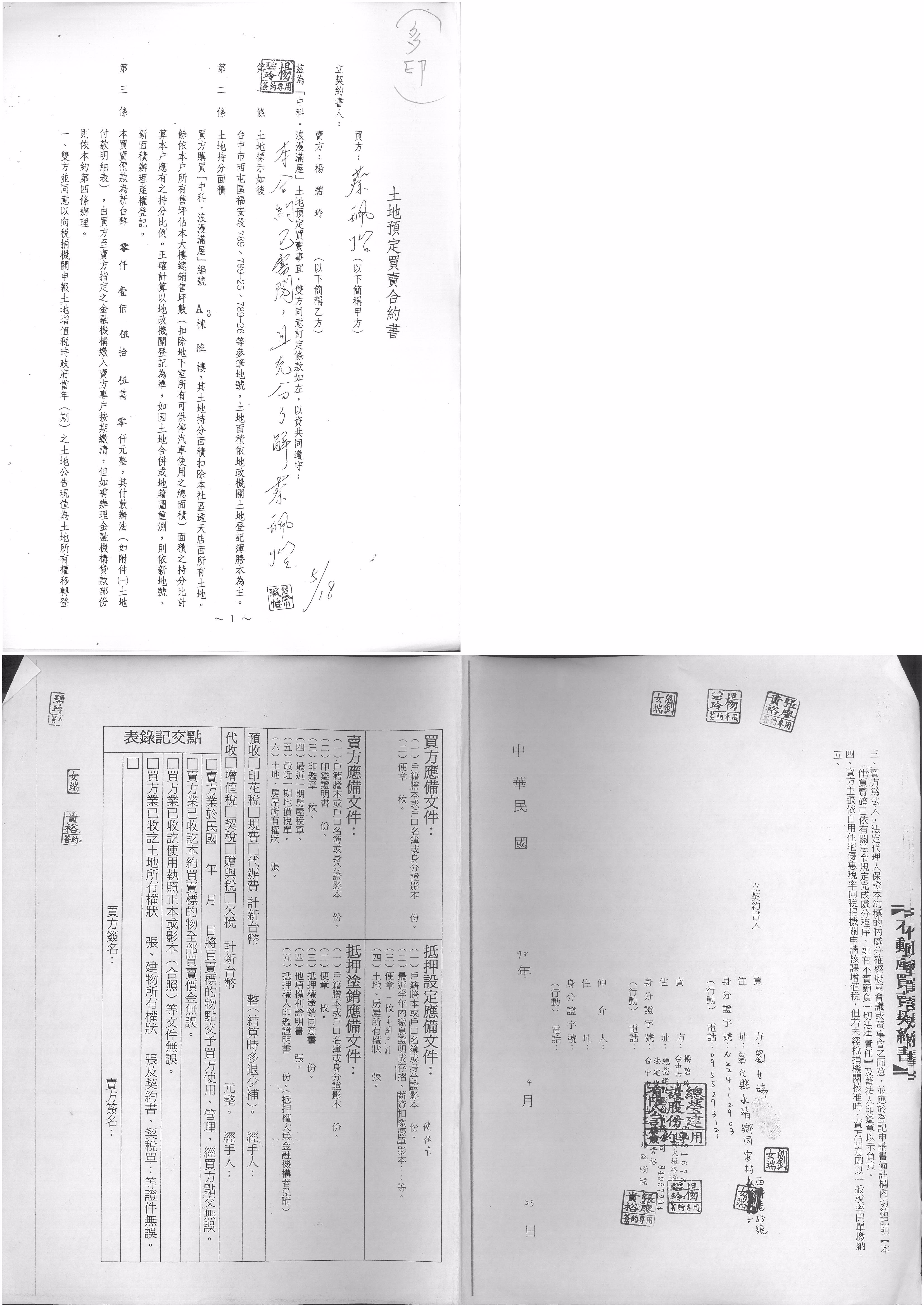 土地买卖契约書